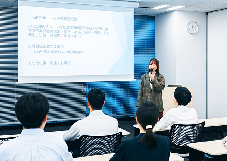 J-POWERグループの多様なニーズを把握し、最適な研修の企画・運営を通じて、人財の育成・能力開発に貢献しています。さらに、通信教育や資格取得支援など、人財育成に関わるサービスも幅広く提供しています。